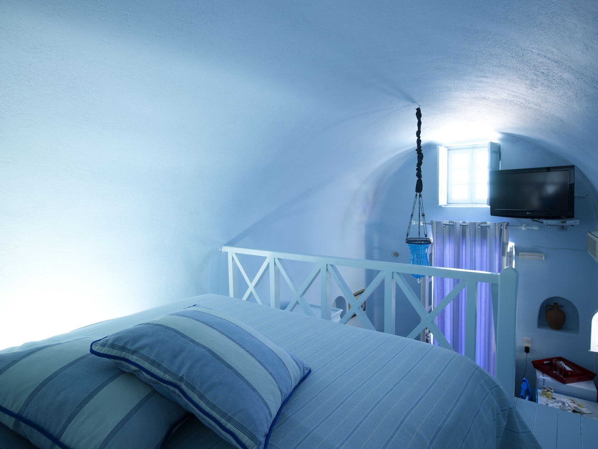 Sitting room, bedroom, bathroom with shower, private balcony offering breathtaking views to the Caldera.